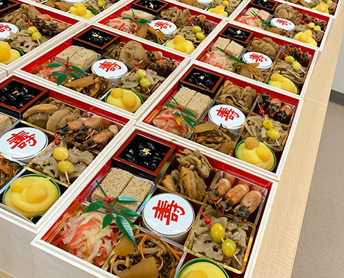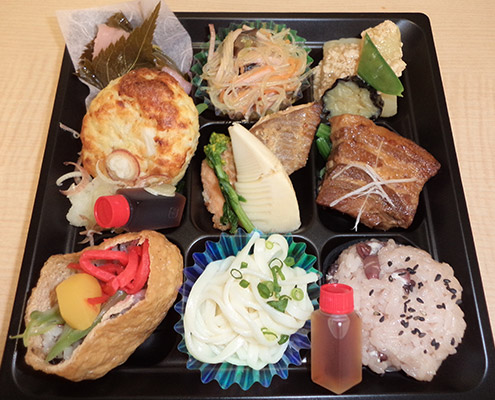 病院給食管理を行う事業者として、腎臓病、生活習慣病などに対応する制限食、塩分・脂質を抑えた高齢者食、噛む・飲み込むが困難な方向けのキザミ食・ミキサー食、多彩な普通食まで、皆さまに「おいしい!」と喜んでもらえる健康食を、栄養士・調理師・配達員が一体となり、ご自宅までお届けします。